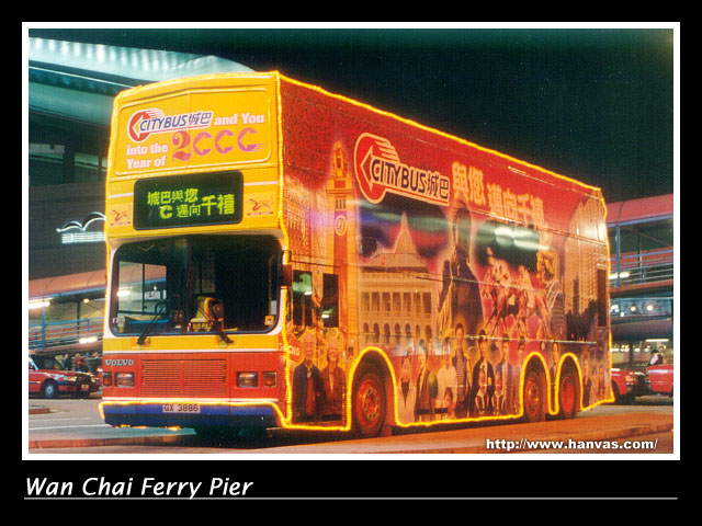 On the other hand, Citybus specially painted two buses on its fleets with Millennium advertisement. They are #503 and #2301. The main difference between the two buses is that #503 is stick with full advertisement including on the windows of the bus, and thus it is only for showing purpose. Another Millennium bus #2301 was then appeared for servicing purpose and the advertisement on the windows is being removed.