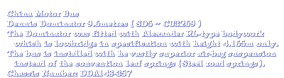 With the success of the trials undertaken with the DD1, CMB made an order of 6 Dennis Dominator in 1982. The new buses are bodied with Walter Alexander RL-type bodywork with 9.6-metre in length and are low-bridge in specification, so as to suitable for serving on the Peak-routes. The engine and transmission are similar to the DD1. CMB later fleeted them as SD1-SD6. For the first three Dominator (SD1-SD3), they were using the convention leaf springs suspension while the others (SD4-SD6) were installed with the vastly superior air-bag suspension.