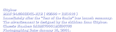 Before the UITP Exhibition held on the October 1998, the bus was being re-painted as the standard Citybus Livery participated the exhibition. In the early January of 2001, Citybus had made a special livery for #2500 as the "Year of the Snake" bus.