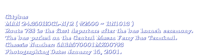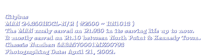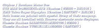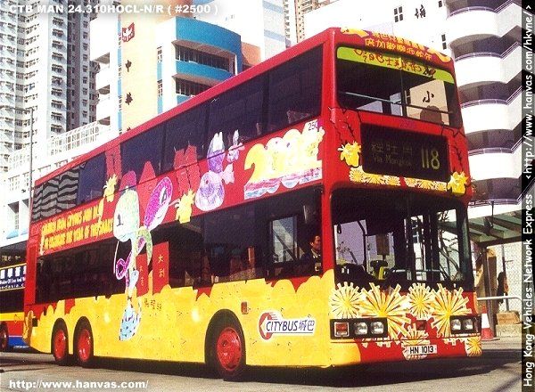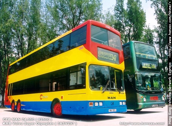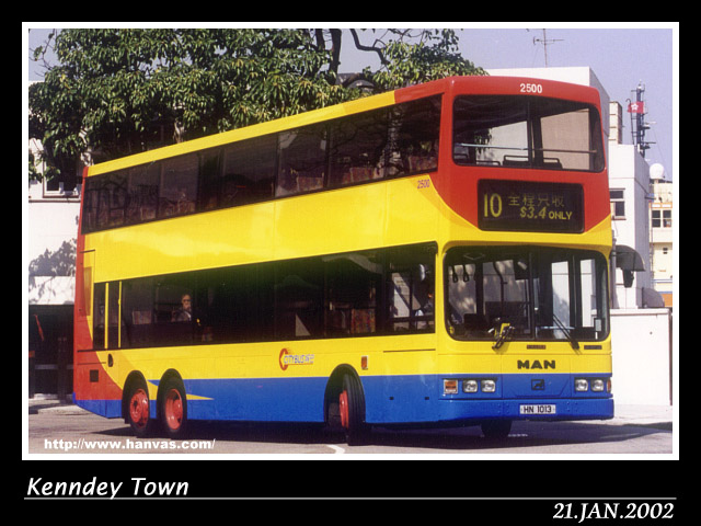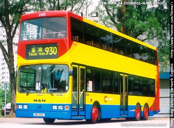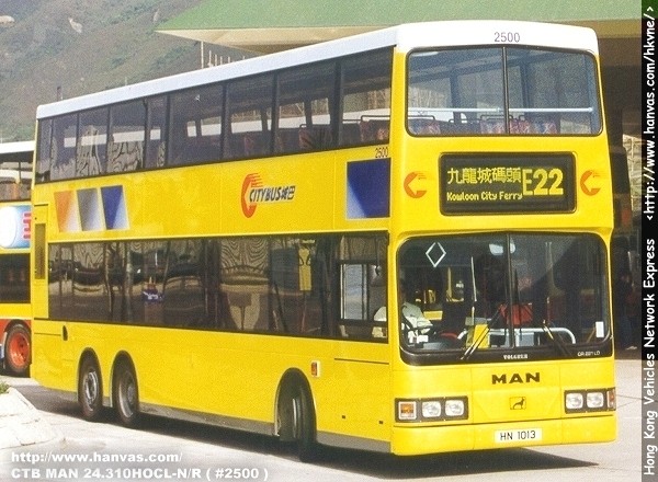 Painted with a special Citybus livery, the owner of the MAN 24.350 is Citybus. It passed the examinations from the Transport Department and being registered as HN1013 in December 1997. With the fleet number as #2500, the MAN started its services in Hong Kong in the mean time.