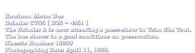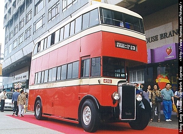 In 1949, the Kowloon Motor Bus started to introduce double-deck fleets to Hong Kong. That are the Daimler CVG5, usually called as Daimler A. The type CVG5 stands for Commercial Victory Gardner 5-cylinder. The Daimler A has an overall length of 26-feet and 16-feet with 4-inch for the wheelbase length. That is the standard specification for the Daimler CVG5 chassis initially developed.