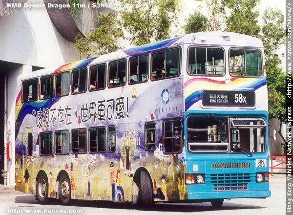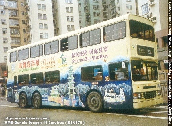 In December 1986, KMB introduced the first batch of 50 Dennis Dragon 11-metre (DDA-1801) to Hong Kong and fleeted as S3N1 - S3N50. Similar to those 12-metre version previously acquired, these 50 Dragons are powered with Gardner 6LXCT engine and transmitted by Voith DIWA-851 3-Speed fully-automatic gearbox. Maximum power output can upto 220bhp @ 1,900rpm. Total passenger capacity allowance can also reach to 151.