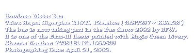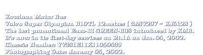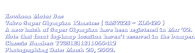 On 14th April 2002, the first Volgren bodied Volvo Super Olympian 12-metre delivered to Hong Kong in the afternoon at the Hongkong International Terminal. Just like the MAN 24.310HOCL-N/R, the outlook is quite similar.